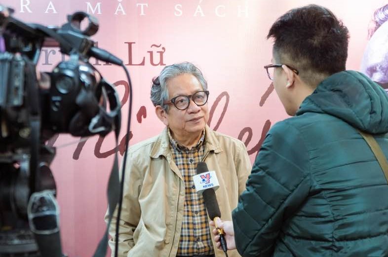 Họa sĩ, dịch giả Trịnh Lữ trả lời phỏng vấn báo chí trong Lễ ra mắt sách. - Ảnh: Fb nhân vật. |