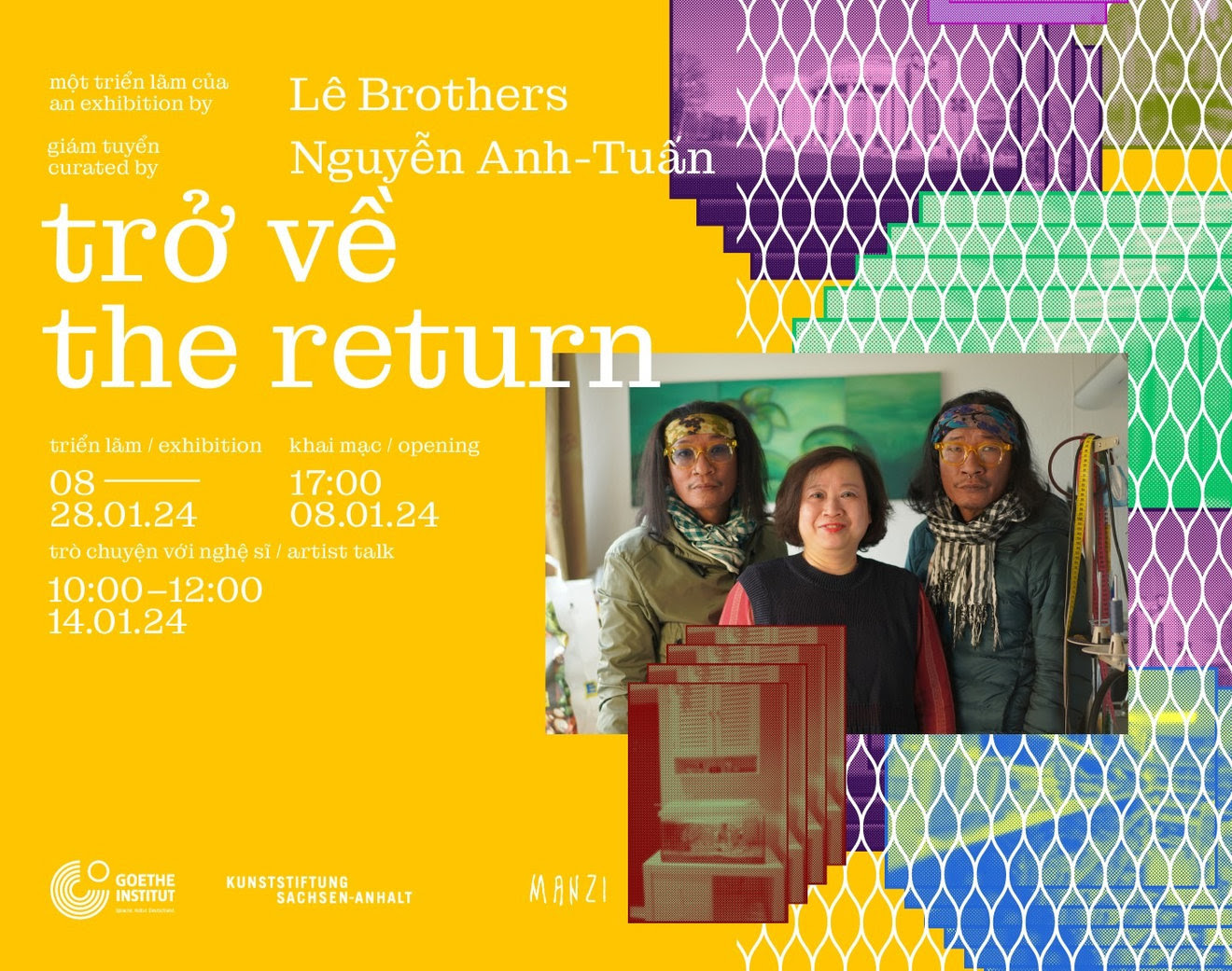 “The Return – Trở về” là dự án nghệ thuật mới nhất của Lê Brothers, là kết quả ba tháng lưu trú của hai nghệ sỹ Le Brothers tại Halle , CHLB Đức. với sự hỗ trợ của Viện Goethe Hà Nội và Quỹ Văn hóa bang Saxony-Anhalt . Chia ly và tụ hội trở thành một trong những chủ đề làm việc xuyên suốt của hai nghệ sĩ trong hơn một thập kỉ. Thông qua các tác phẩm ảnh và video, triển lãm “Trở về” phản ánh những góc nhìn đa dạng của cộng đồng người Việt sinh sống tại Đức.