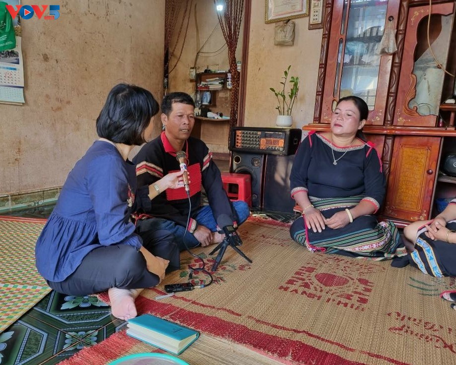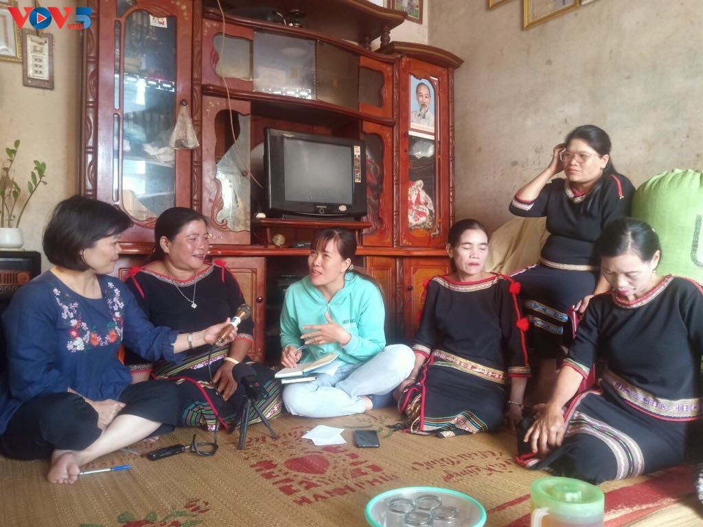 Phóng viên VOV trò chuyện cùng các học viên lớp truyền dạy sử thi của xã Ea Tul. |