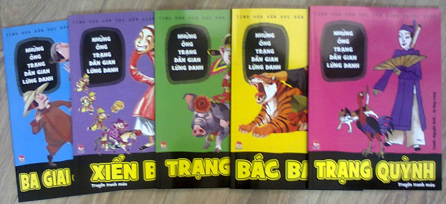 Trạng Lợn, Trạng Quỳnh, Ba Phi, Xiển Bột, Ba Giai - Tú Xuất. Sách in màu khổ lớn, minh họa rất có phong cách của các họa sĩ nổi tiếng: Nguyễn Bích, Tạ Huy Long, Lê Minh Hải…