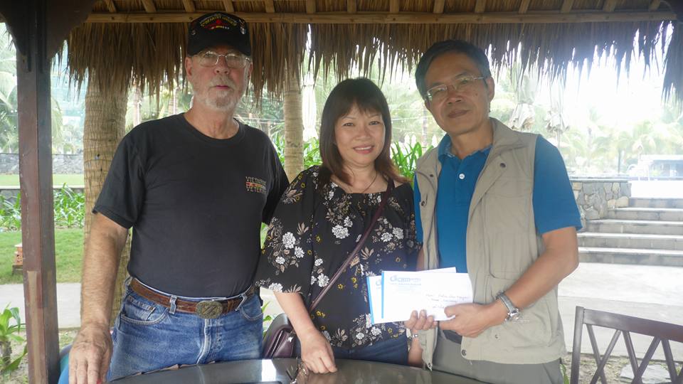 Toàn bộ tiền bán bún thu được hai vợ chồng mang về trong chuyến thăm quê Việt Nam để ủng hộ Cơm Có Thịt, biết chúng tôi đạp xe qua Đà Nẵng thì hẹn gặp để trao.
