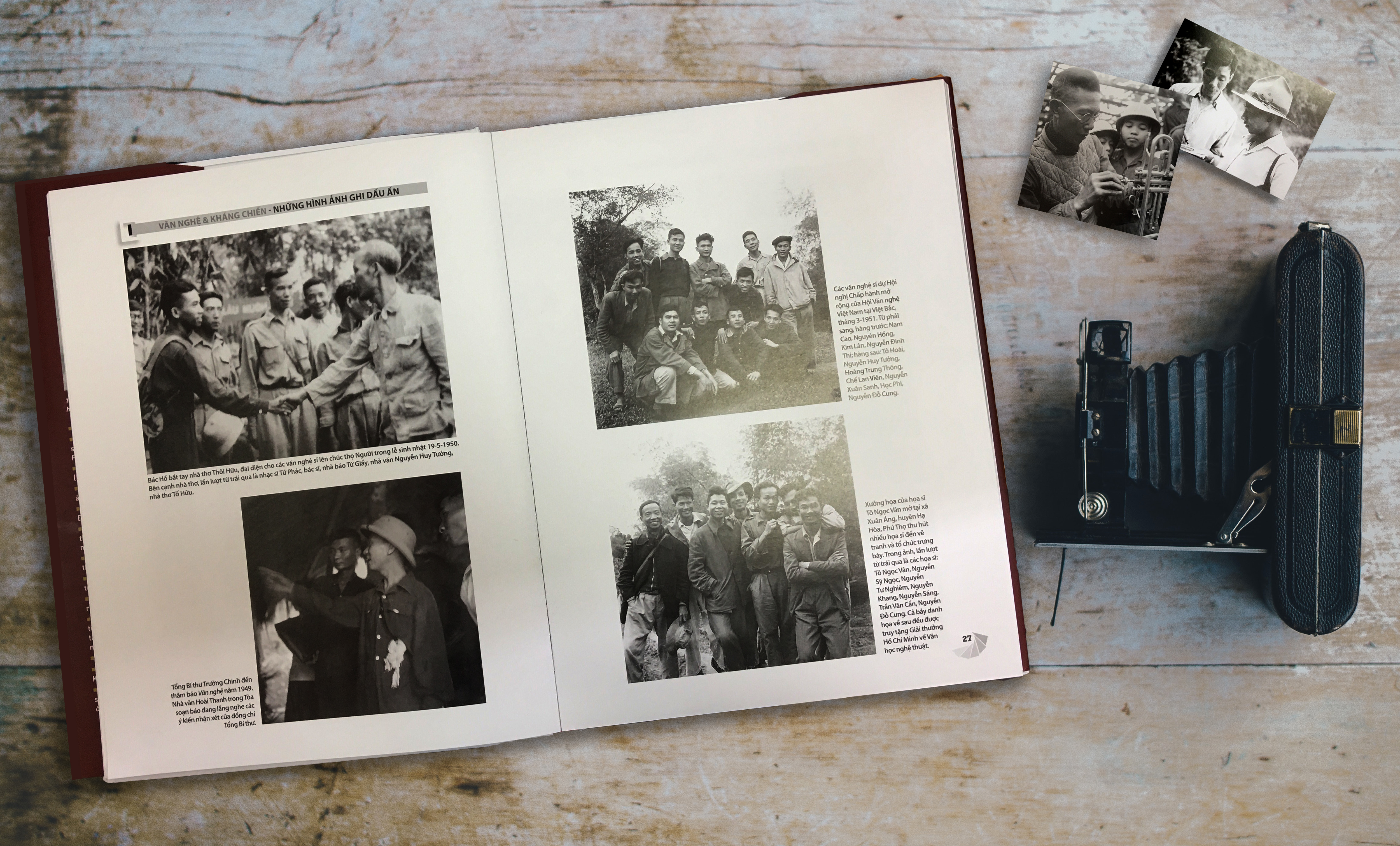 Trong 200 trang sách ảnh khổ lớn, bạn đọc sẽ gặp lại những gương mặt văn nghệ sĩ tiêu biểu như Thế Lữ, Xuân Diệu, Nguyễn Tuân, Tô Ngọc Vân, Tố Hữu, Nguyễn Huy Tưởng, sống trong không khí hào hùng của những năm tháng văn nghệ song hành với cuộc kháng chiến, đến những chi tiết đặc sắc: sinh hoạt trong kháng chiến, bệnh viện giữa rừng, một buổi chào cờ của Thiếu sinh quân…