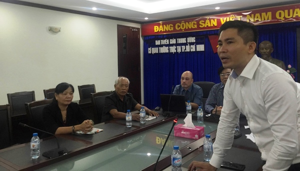 Diễn viên Quang Khải- người thủ vai Phan Đăng Lưu chia sẻ về vai diễn tại buổi họp báo.