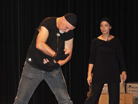 | Cựu chiến binh Mỹ Brian Delate và NSND Lê Khanh trong vở kịch Ngày tưởng niệm |
