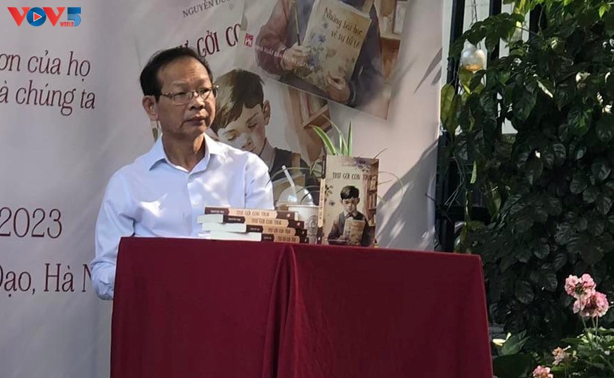 Nhà thơ Nguyễn Đức Tùng trong một sự kiện ra mắt sách tại Hà Nội. Ảnh: P.H |