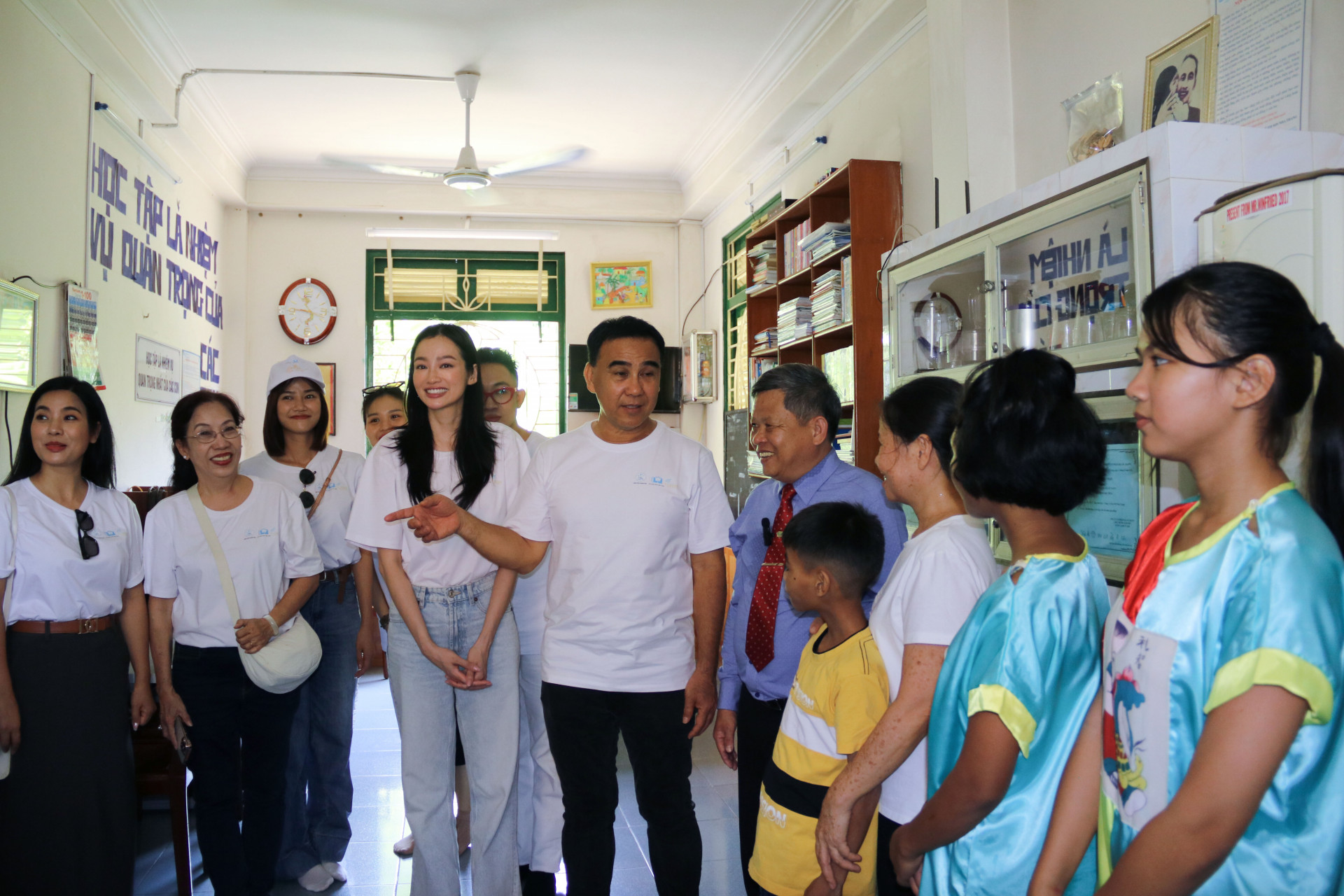 Các nghệ sĩ điện ảnh thăm, động viên, giao lưu trẻ em Làng SOS Nha Trang - Ảnh: Thái Bình |