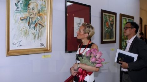 (VOV5) - Triển lãm giới thiệu 40 tác phẩm kí họa, 8 bức chân dung sơn dầu Đại tướng Võ Nguyên Giáp và làng quê của Đại tướng được họa sĩ Văn Dương Thành thực hiện từ ngày 29/3- 3/4/1999.