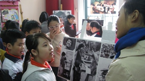 (VOV5)- Nhà xuất bản Kim Đồng cùng Bảo tàng Phụ nữ Việt Nam tổ chức Triển lãm lưu động “Trẻ em thời chiến” tại các trường Tiểu học, Trung học cơ sở trên địa bàn Hà Nội,