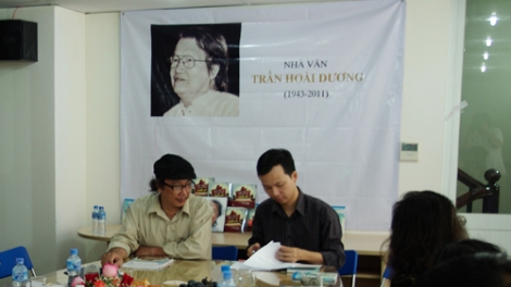 (VOV5)- NXB Kim Đồng vừa ký với nhạc sĩ Trần Lê Quỳnh - con trai nhà văn Trần Hoài Dương - bản hợp đồng ưu tiên xuất bản 18 tác phẩm Trần Hoài Dương trong 10 năm tới.