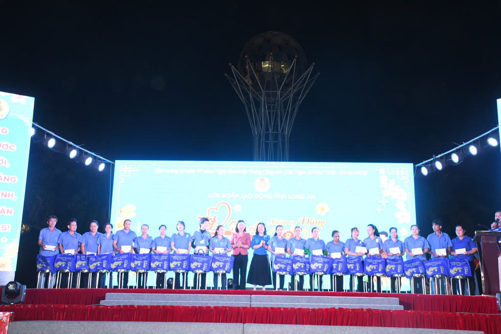 Tại chương trình, Liên đoàn Lao động tỉnh Long An trao 100 phần quà Tết cho công nhân, lao động có hoàn cảnh khó khăn.