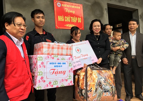 | Bà Ngô Thị Thanh Hằng – UV TW Đảng, Phó Bí thư thường trực Thành ủy Hà Nội, Chủ tịch danh dự Hội CTĐ Thành phố, ông Trương Hán Phu - Phó Chủ tịch Hội Chữ thập đỏ TP.Hà Nội cắt băng khánh thành nhà CTĐ tặng gia đình anh Nguyễn Xuân An (27 tuổi) thuộc diện hộ nghèo ở thôn Hợp Nhất, xã Ba Vì. - Ảnh: Phạm Lan/Hội chữ thập đỏ Việt Nam |