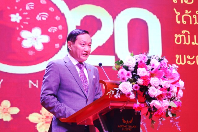 Phát biểu tại tiệc chiêu đãi, Đại sứ Đặc mệnh Toàn quyền Việt Nam tại Lào Nguyễn Bá Hùng khẳng định, năm 2019 đất nước Việt Nam đã gặt hái được nhiều thành công rực rỡ trên nhiều lĩnh vực. Bên cạnh đó, năm 2019 cũng là năm chứng kiến những bước phát triển mới, rất đáng tự hào trong quan hệ hai nước Việt Nam và Lào. Mối quan hệ đó được thể hiện toàn diện trên tất cả các lĩnh vực từ chính trị, ngoại giao, quốc phòng-an ninh cho đến kinh tế và các lĩnh vực quan trọng khác, điển hình là sự thành công là kết quả đạt được của Cuộc họp giữa hai Bộ chính trị và kỳ họp lần thứ 42 của Ủy ban hợp tác kinh tế Việt Nam-Lào, Lào-Việt Nam vừa mới diễn ra với nhiều thỏa thuận được ký kết, mở ra thời kỳ hợp tác mới giữa hai nước.