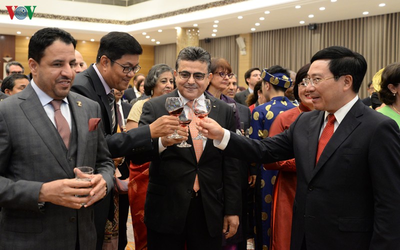 Tại sự kiện, Phó Thủ tướng, Bộ trưởng Bộ Ngoại giao Phạm Bình Minh gửi lời cảm ơn tới Chính phủ, nhân dân các nước và các tổ chức quốc tế về sự ủng hộ quý báu, hợp tác hiệu quả dành cho Việt Nam trong thời gian qua; đồng thời, mong muốn trong năm mới, Việt Nam sẽ tiếp tục nhận được sự kề vai, sát cánh, tăng cường hơn nữa quan hệ hợp tác nhiều mặt, xây dựng và tin cậy.