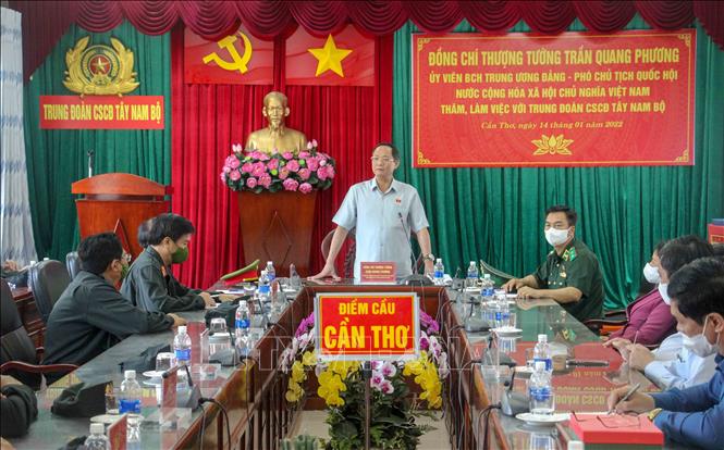 Ngày 14/1, tại thành phố Cần Thơ, Đoàn công tác của Quốc hội do Phó Chủ tịch Quốc hội, Thượng tướng Trần Quang Phương dẫn đầu đã đến thăm, làm việc và chúc Tết Trung đoàn Cảnh sát cơ động Tây Nam Bộ và Lữ đoàn Thông tin 29, Quân khu 9.