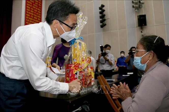 Phó Thủ tướng Vũ Đức Đam thăm và tặng quà Tết cho người nghèo tại Bình Thuận -Ảnh: Nguyễn Thanh/TTXVN |