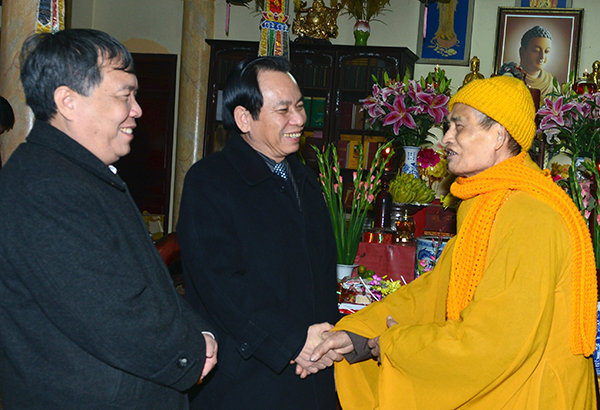 | Ông Vũ Hồng Khanh chúc Tết Trưởng lão Hòa thượng Thích Phổ Tuệ (Ảnh: kinhtedothi.vn) |