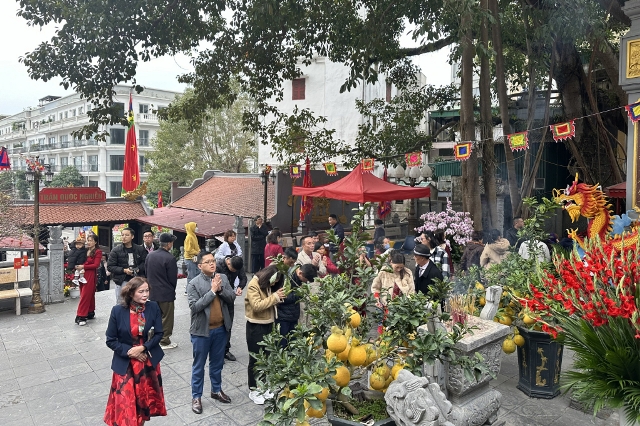Ông Đồng Quang Khánh và chị Lê Thị Hồng (Thành phố Hạ Long), cho biết: Đầu năm, chúng tôi luôn sắp lễ, hoa quả dâng lên các đền thờ, chùa chiền để cầu may mắn và cũng là đi du xuân.
