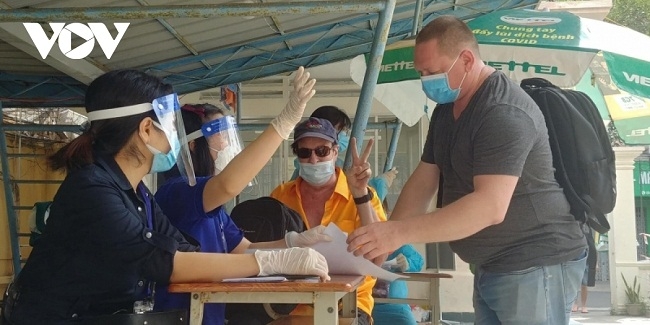 Hướng dẫn người nước ngoài ở thành phố Nha Trang tiêm vắc xin. |