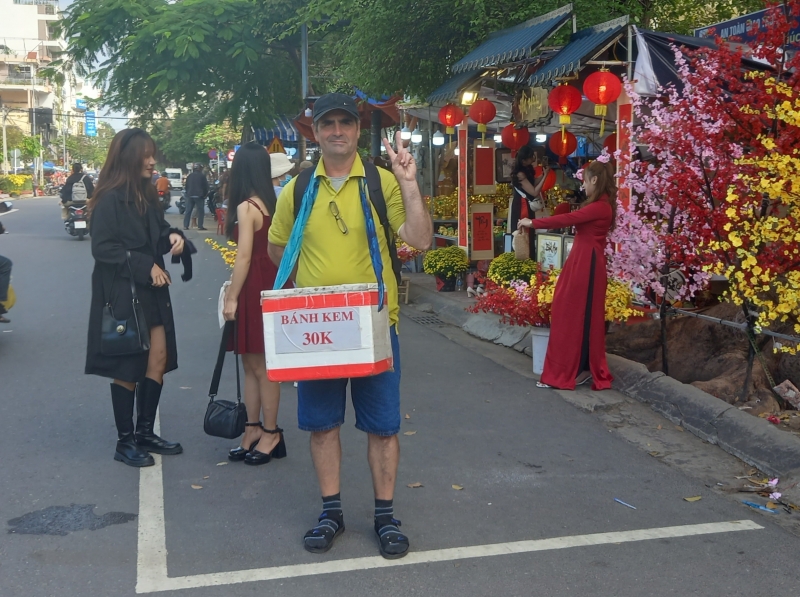 Ông Vlap, 50 tuổi, quê thành phố Saint Petersburg cùng vợ thuê chung nhà trọ với vợ chồng chị Anhia. Vợ chồng ông Vlap đến Nha Trang cũng đã gần 10 năm nay. Trước ngày dịch bùng phát, vợ chồng ông làm dịch vụ du lịch cho du khách Nga. Hiện nay, trong thời gian chờ đợi khách Nga quay trở lại đông hơn, hằng ngày, vợ chồng ông đến làm việc tại một nhà hàng nhỏ. Ông Vlap trông giữ xe, hướng dẫn khách, còn vợ mình thì phụ giúp việc nấu bếp, phục vụ khách. Sống lâu năm ở Việt Nam, ông Vlap bảo rằng, Tết là thời điểm hạnh phúc nhất: “Chúng tôi rất sung sướng được đón Tết. Tôi rất yêu con người Việt Nam. Bây giờ, đời sống đã bớt khó khăn vì đã có khách du lịch từ các nước cộng hòa của Liên Xô cũ. Tôi mong rằng sau Tết, tình hình có thể thay đổi, khách du lịch sẽ qua nhiều, tình hình visa cũng bớt căng thẳng hơn. Tôi xin chúc cho thế giới được hòa bình, mọi người được sống vui vẻ, hạnh phúc, không ai bị thiệt hại do chiến tranh.”