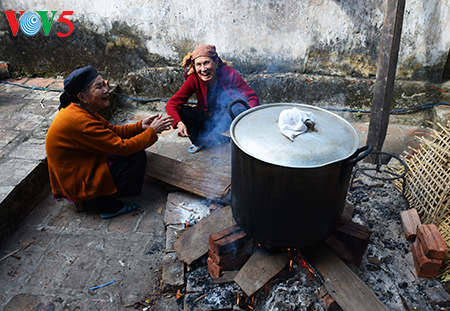 Câu chuyện bên nồi bánh chưng. Ảnh: Mỹ Trà