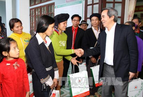 | Nguyễn Văn Bình tặng quà cho gia đình chính sách, các gia đình đồng bào dân tộc thiểu số là hộ nghèo, nạn nhân chất độc da cam có hoàn cảnh khó khăn (Ảnh: Trung Kiên/TTXVN) |