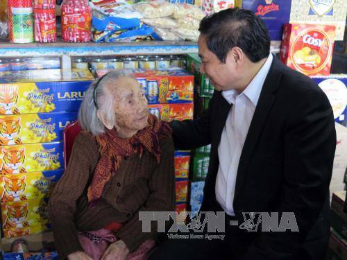 Nhân dịp này, Trưởng ban Tổ chức Trung ương Phạm Minh Chính đến dâng hương tại Tượng đài Mẹ Việt Nam anh hùng, tặng quà các gia đình chính sách và thăm, chúc Tết Mẹ Việt Nam anh hùng Trần Thị Khẩn, 100 tuổi, ở thành phố Tam Kỳ.