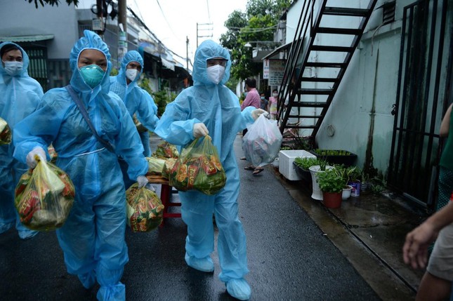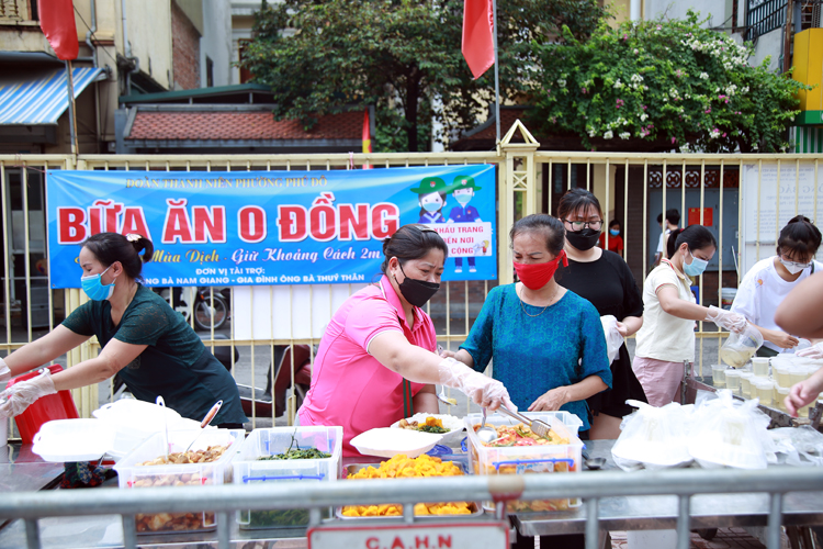 Những bữa cơm '0 đồng' ấm tình người trong mùa dịch. Ảnh: TTXVN |