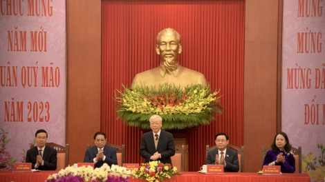 (VOV5) - Tổng Bí thư Nguyễn Phú Trọng chúc sự nghiệp cách mạng của nhân dân ta đạt được nhiều thắng lợi mới to lớn hơn nữa.