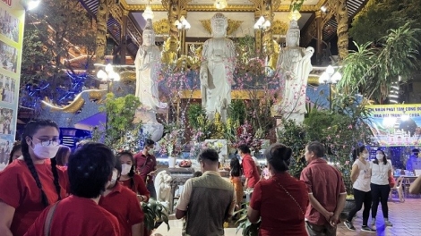 (VOV5) - Bà con đã thành tâm thắp hương lễ Phật, tụng kinh cầu an, bày tỏ lòng mong ước một năm mới an yên, nhà nhà hạnh phúc.