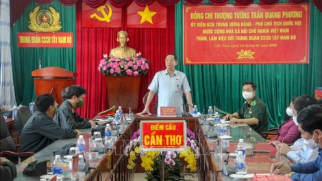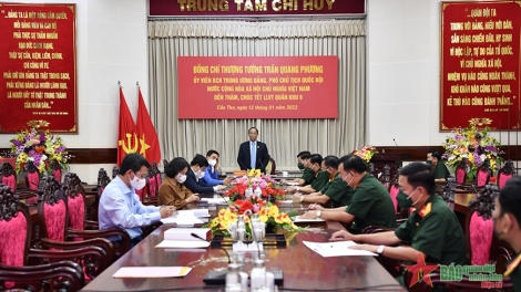 (VOV5) - Phó Chủ tịch Quốc hội Trần Quang Phương nhấn mạnh lực lượng vũ trang Quân khu 9 cần tổ chức tốt Tết Quân dân và thực hiện nghiêm nhiệm vụ trực sẵn sàng chiến đấu.