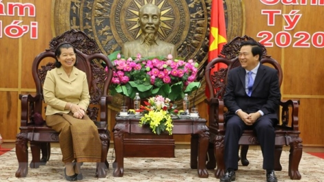 (VOV5) - Bí thư Tỉnh ủy Long An đề nghị bà Men Sam An cùng Chính phủ Vương quốc Campuchia quan tâm thúc đẩy nhanh việc khai thông đường giao thông tại Cửa khẩu quốc gia Bình Hiệp.