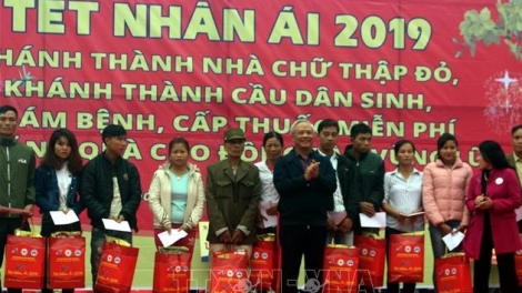 (VOV5) - “Tết nhân ái” có các hoạt động gồm: Khánh thành nhà Chữ thập đỏ, khánh thành cầu dân sinh suối Tìm; khám bệnh tư vấn sức khoẻ và cấp phát thuốc miễn phí cho nhân dân xã Trung Sơn