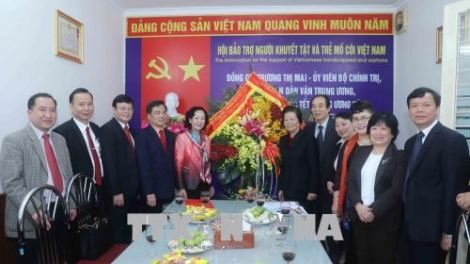 (VOV5) -Chiều 21/02, tại Hà Nội, Trưởng Ban Dân vận Trung ương Trương Thị Mai đến thăm, chúc Tết Hội Bảo trợ người tàn tật và trẻ em mồ côi Việt Nam.