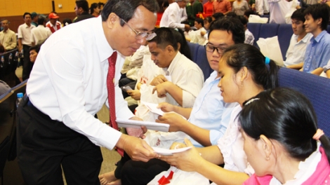 (VOV5) -Chiều 31/1, tại huyện Củ Chi, Chủ tịch nước Trần Đại Quang cùng đoàn công tác Trung ương tham dự chương trình trao quà Tết cho hộ nghèo của huyện.