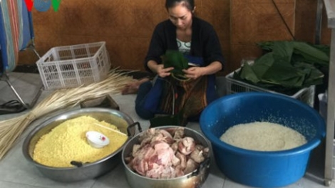 (VOV5)- Hơn 20 năm nay, mỗi lần Tết đến xuân về, cả gia đình bà Quy ở Vientiane lại cùng nhau gói bánh chưng để cúng tổ tiên và biếu bạn bè, người thân.