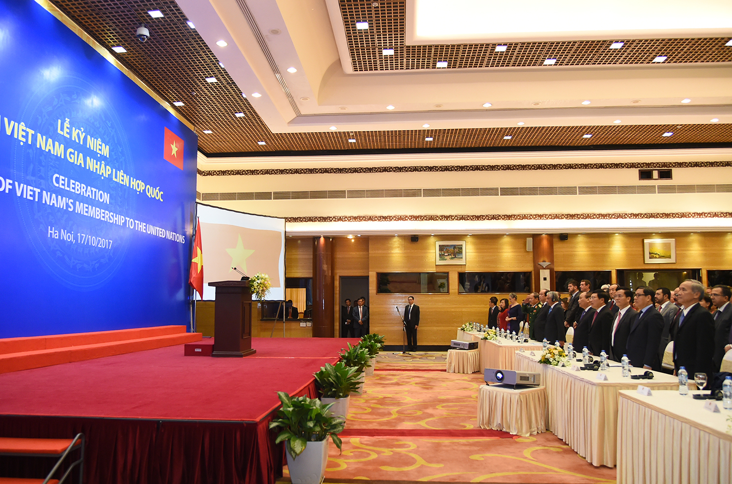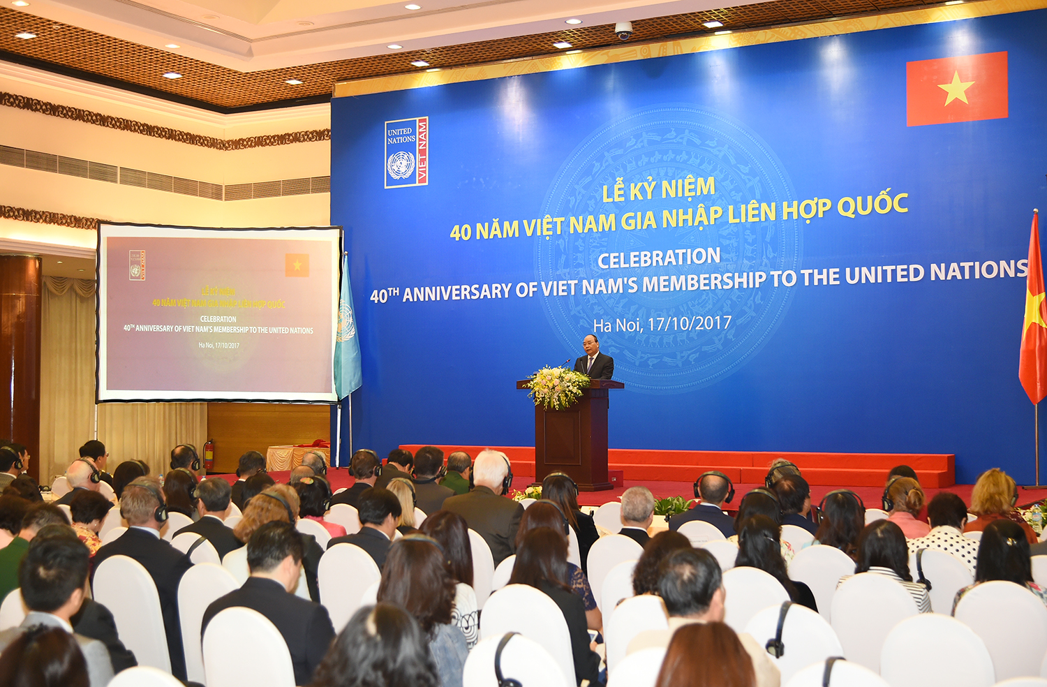 Dự và phát biểu tại lễ kỷ niệm, Thủ tướng Nguyễn Xuân Phúc nêu bật việc Việt Nam trở thành thành viên thứ 149 của Liên Hợp Quốc vào ngày 20/9/1977, đánh dấu sự công nhận đối với Nhà nước Việt Nam độc lập, tự do, thống nhất, tiến bước vào công cuộc đổi mới và hội nhập quốc tế: “Nhìn lại 40 năm qua, Việt Nam tự hào là thành viên có trách nhiệm của Liên Hợp Quốc. Dù nguồn lực còn hạn chế nhưng Việt Nam luôn nỗ lực đóng góp tích cực trên cả 3 trụ cột là hòa bình-an ninh, phát triển và quyền con người. Khuôn khổ hợp tác phát triển Việt Nam-Liên Hợp Quốc được coi là một hình mẫu thành công.”