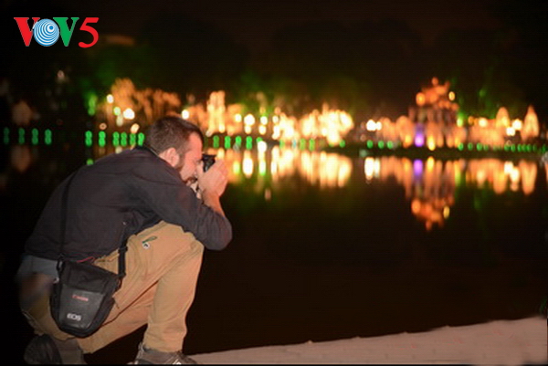 Du khách quốc tế chụp ảnh tại Hồ Hoàn Kiếm - Ảnh: Đức Anh/VOV5 |