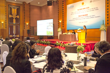 Về phần mình, Phó Tổng Thư ký Liên hợp quốc kiêm giám đốc điều hành UN Women bà Phumzile mlambo Ngcuka cam kết UN Women sẽ tiếp tục hỗ trợ những nỗ lực của Chính phủ Việt Nam trong việc tăng cường an sinh xã hội và công bằng xã hội. Các đại biểu tham dự tọa đàm đóng góp ý kiến tham luận với các chủ đề: chính sách, pháp luật về bình đẳng giới và những đóng góp trong cải thiện việc làm cho phụ nữ; kinh nghiệm trong xây dựng và triển khai các chính sách an sinh xã hội và cung cấp dịch vụ xã hội cho người dân; định hướng và cách tiếp cận phát triển an sinh xã hội cho phụ nữ và trẻ em gái, ưu tiên các nhóm yếu thế và dễ bị tổn thương như phụ nữ nghèo, nữ dân tộc thiểu số, lao động di cư…