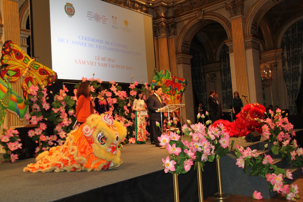 “Nếu như những tiếng vang của các sự kiện cho phép khẳng định Năm Việt nam tại Pháp đã thành công rực rỡ thì tiếng vang đó cũng đem lại tương lai tốt đẹp cho quan hệ giữa hai nước.” Phát biểu tại lễ bế mạc Năm Việt nam tại Pháp diễn ra tối 3/11, tại Tòa thị chính Paris, Đại sứ đặc mệnh toàn quyền Việt nam tại Pháp Dương Chí Dũng nhấn mạnh: năm 2014 năm đầu tiên triển khai Quan hệ Đối tác chiến lược ký năm 2013, lần đầu tiên Việt nam được giới thiệu tại Pháp dưới những góc cạnh đa dạng, độc đáo, truyền thống xen lẫn hiện đại và mang tính sáng tạo.