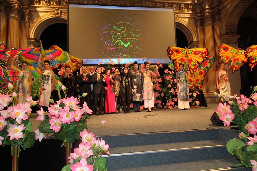 Buổi lễ bế mạc Năm Việt nam tại Pháp đã tạo dấu ấn mạnh mẽ trong lòng đông đảo lãnh đạo, công chúng Pháp và bà con người Việt với màn trình diễn áo dài dân tộc truyền thống của Việt Nam của 3 nhà tạo mẫu Lan Hương, Việt Hùng và Minh Hạnh./.