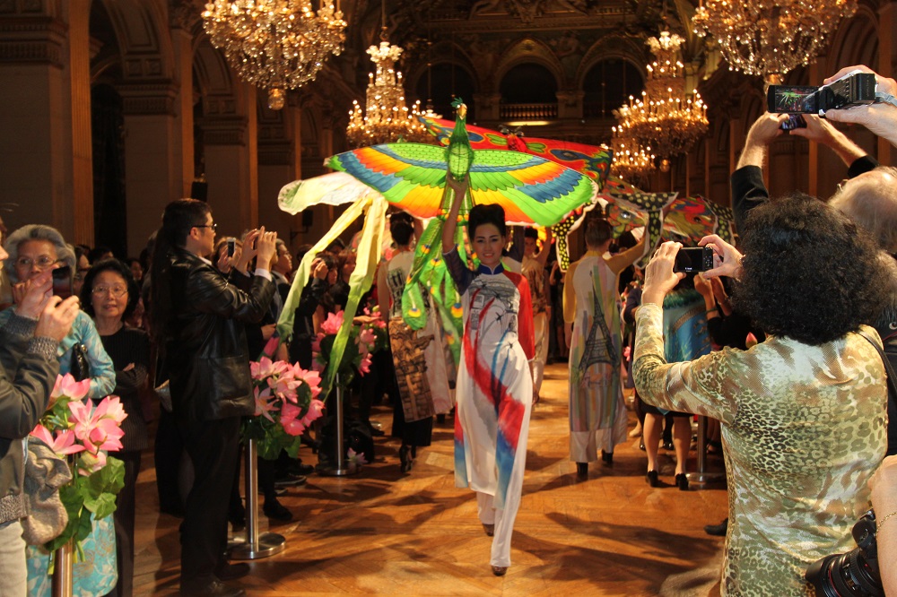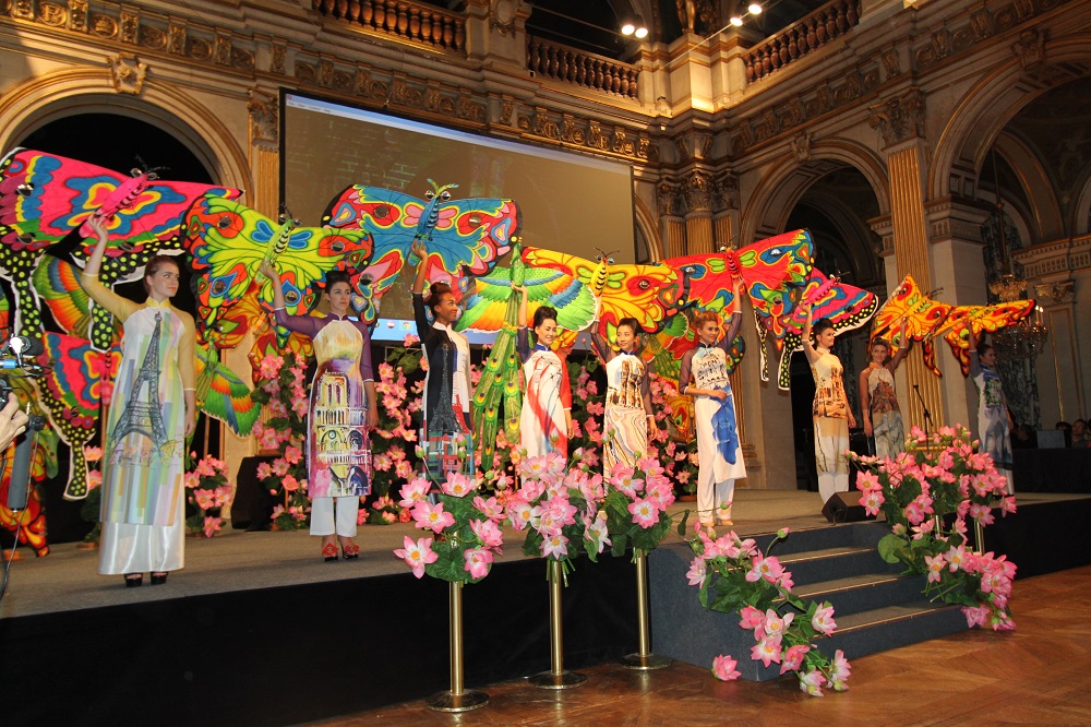 Một số hình ảnh trình diễn áo dài dân tộc truyền thống tại lễ bế mạc Năm Việt Nam tại Pháp: