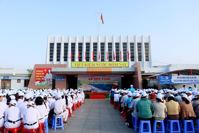 Lễ mít tinh hưởng ứng Ngày Nước thế giới (22/3) với chủ đề “Nước cho hòa bình” và Ngày Khí tượng thế giới (23/3) tại huyện Tuy Phước, Bình Định. Ảnh: binhdinh.gov.vn |