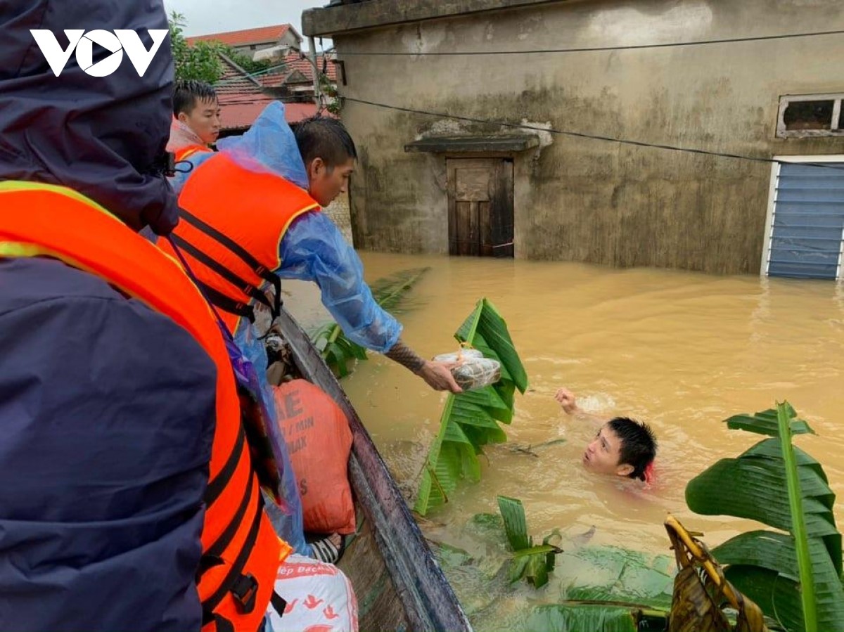 Các lực lượng cứu hộ, cứu nạn tỉnh Quảng Bình giúp dân trong lũ. - Ảnh: VOV