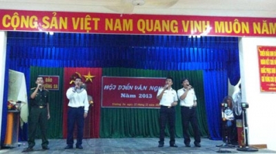 | Một tiết mục văn nghệ tự biên do cán bộ, chiến sĩ đảo Trường Sa Lớn trình bày. Ảnh: nhandan.org.vn |
