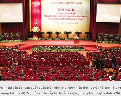 (VOV5) - Hội nghị cán bộ toàn quốc quán triệt triển khai thực hiện Nghị quyết Hội nghị TW 4 (khoá XI) của Đảng cộng sản Việt nam kết thúc hôm qua, tại Hà nội.