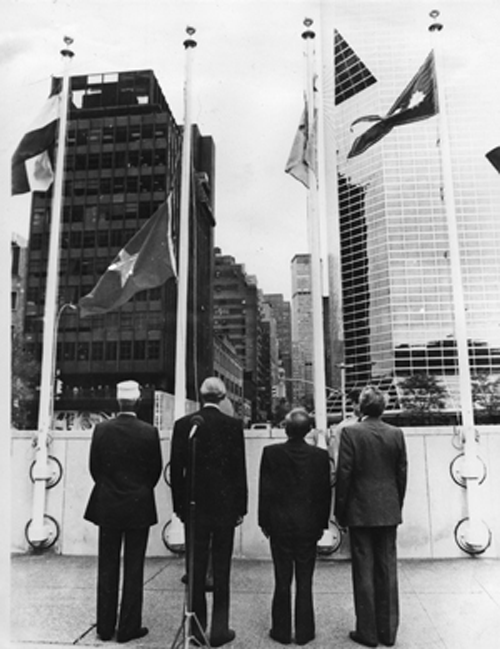 | Lễ thượng cờ Việt Nam tại trụ sở LHQ ngày 20/9/1977 - ngày Việt Nam chính thức gia nhập LHQ (nguồn Internet) |