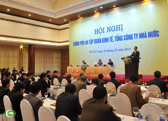 Phát biểu tại Hội nghị, Thủ tướng Nguyễn Tấn Dũng khẳng định Chính phủ sẽ sớm giải quyết các kiến nghị chính đáng của doanh nghiệp, nhất là hoàn thiện thể chế, cơ chế tạo môi trường thuận lợi để doanh nghiệp hoạt động ngày càng thiết thực và hiệu quả hơn. Thủ tướng nêu rõ phải nghiêm túc khắc phục những hạn chế yếu kém, tồn tại ở các Tập đoàn, Tổng công ty nhà nước sản xuất kinh doanh thua lỗ, tài chính thiếu lành mạnh, đầu tư kém hiệu quả. Thủ tướng yêu cầu các Tập đoàn, Tổng công ty nhà nước rà soát lại kế hoạch sản xuất kinh doanh; sắp xếp, đổi mới và tái cơ cấu Tập đoàn, Tổng công ty theo Đề án đã được phê duyệt.