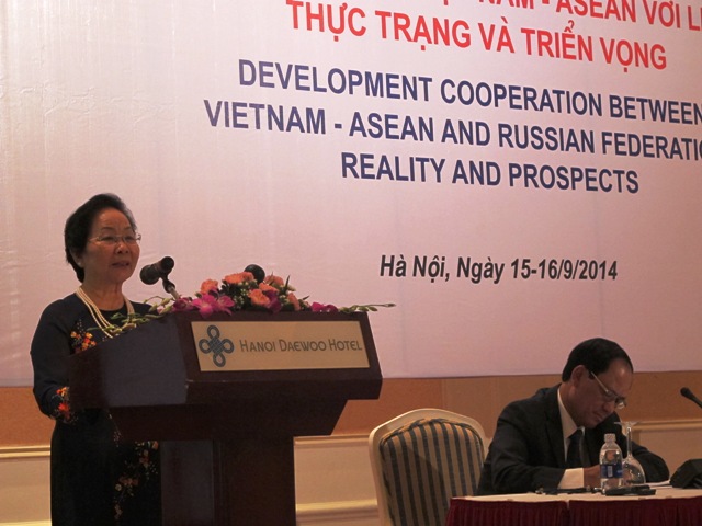 Phát biểu tại Hội thảo, Phó Chủ tịch nước Nguyễn Thị Doan nhấn mạnh trong bối cảnh tình hình thế giới và khu vực đầy biến động như hiện nay, việc tìm ra các giải pháp thúc đẩy quan hệ hợp tác phát triển giữa Việt Nam-ASEAN với Liên bang Nga là vô cùng cần thiết. Với vị thế địa-chính trị quan trọng, ASEAN đang có vai trò ngày càng quan trọng trong khu vực Châu Á-Thái Bình Dương.