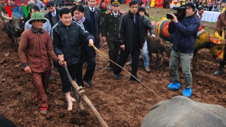 | Chủ tịch nước Trương Tấn Sang đi xá cày đầu năm (Ảnh: vov.vn) |
