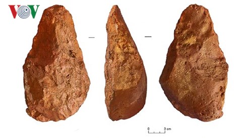 Rìu tay bằng đá được tìm thấy tại khai quật khảo cổ học tại di tích sơ kỳ Đá cũ ở thị xã An Khê, tỉnh Gia Lai |